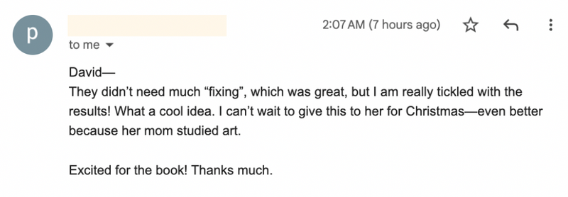 Within 1 business day, we'll email previews of all 14 artworks. Request edits or approve.